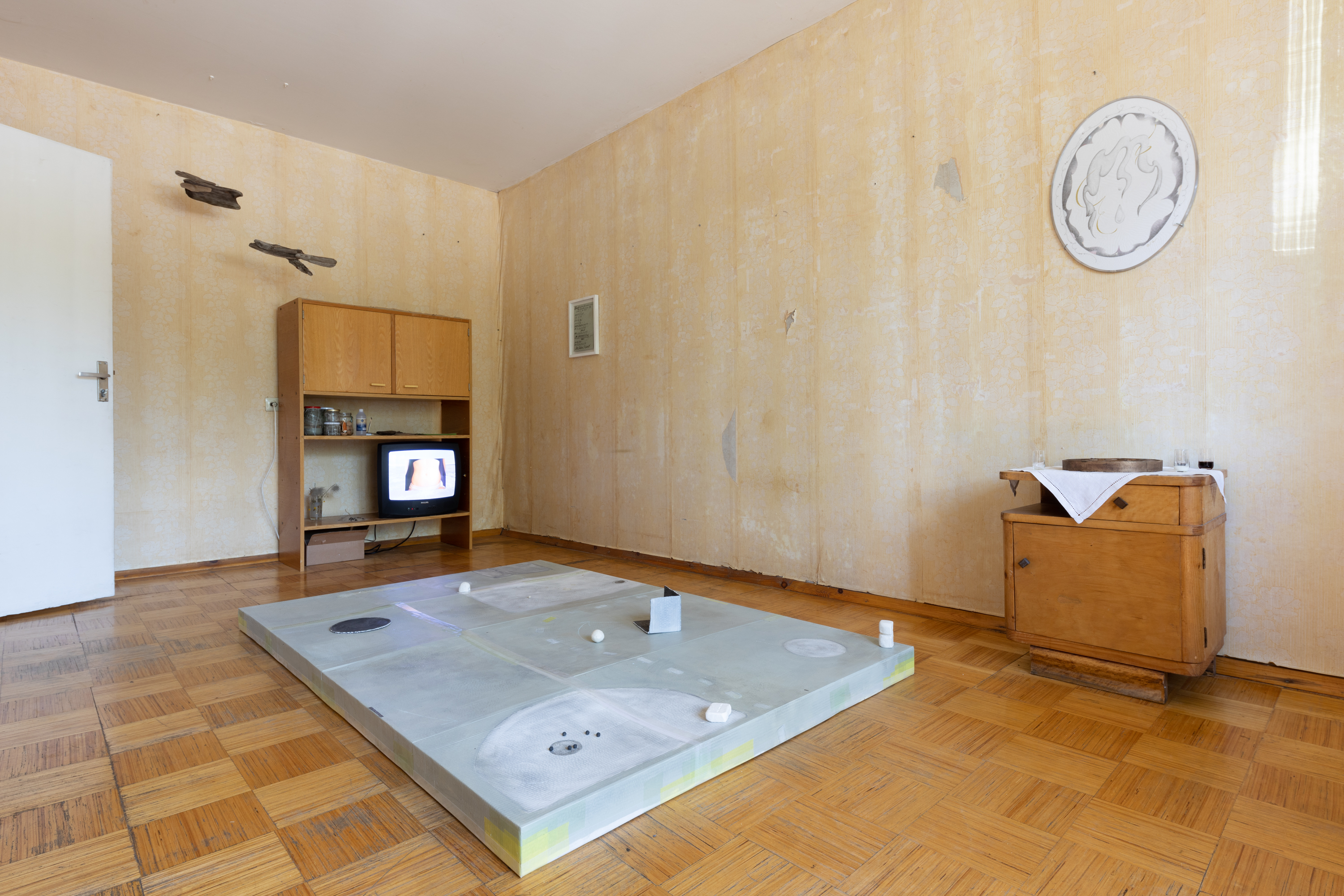 Don’t Think That I Am Pushing You Away (Video installation, drawings, objects, wood, lamps and found objects)